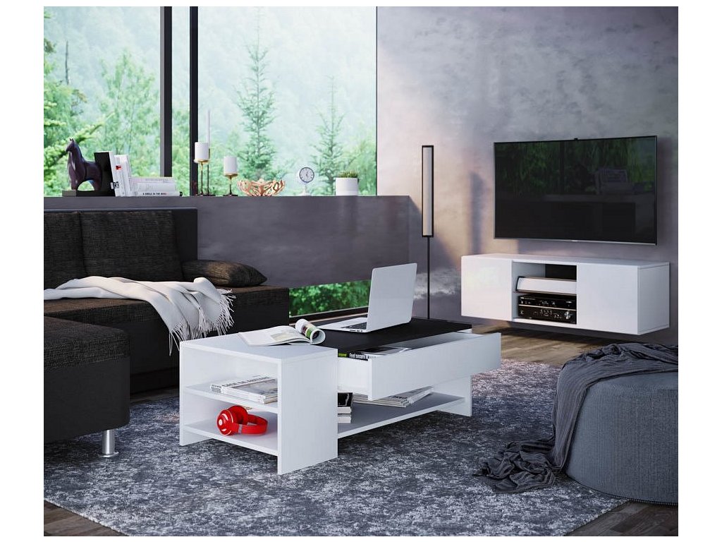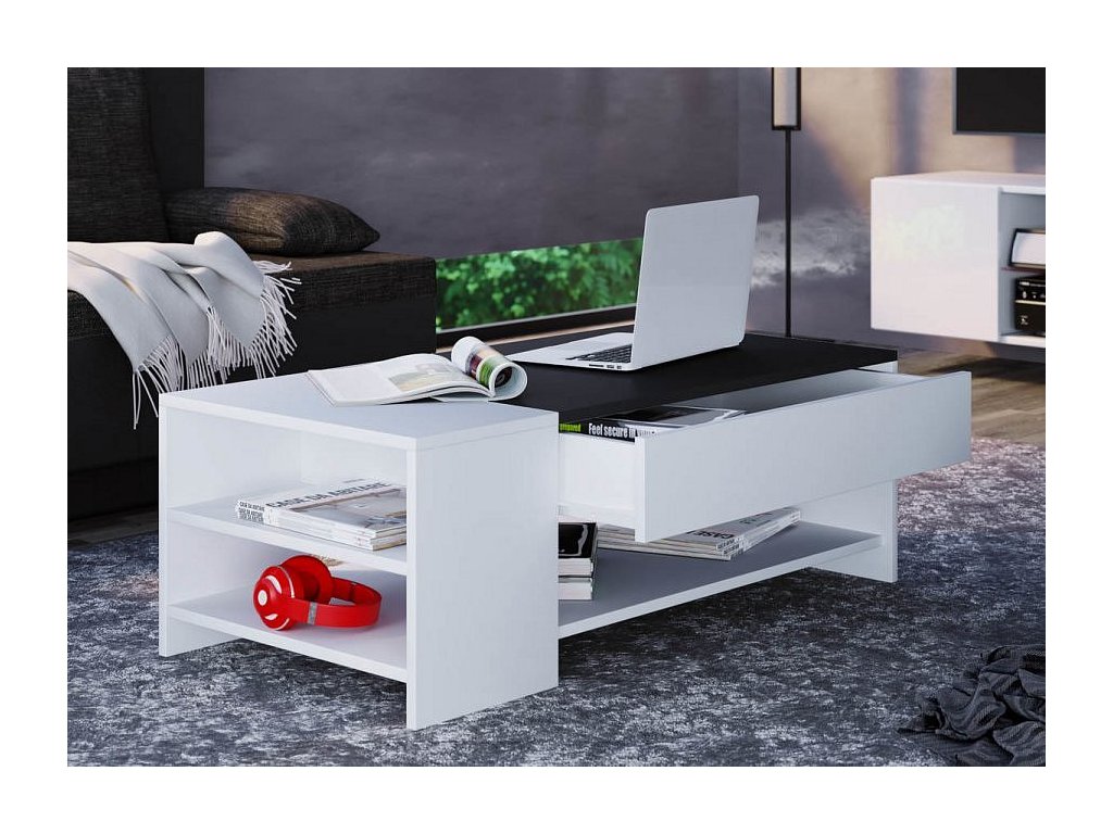 Tento konferenční stolek je vhodným kusem nábytku pro téměř každý obývací pokoj. Tři otevřené přihrádky a velká zásuvka s hladkým chodem poskytují dostatek úložného prostoru.