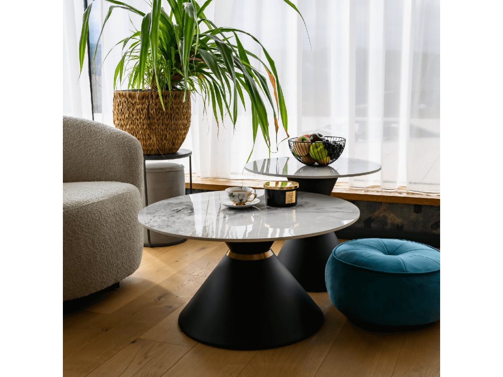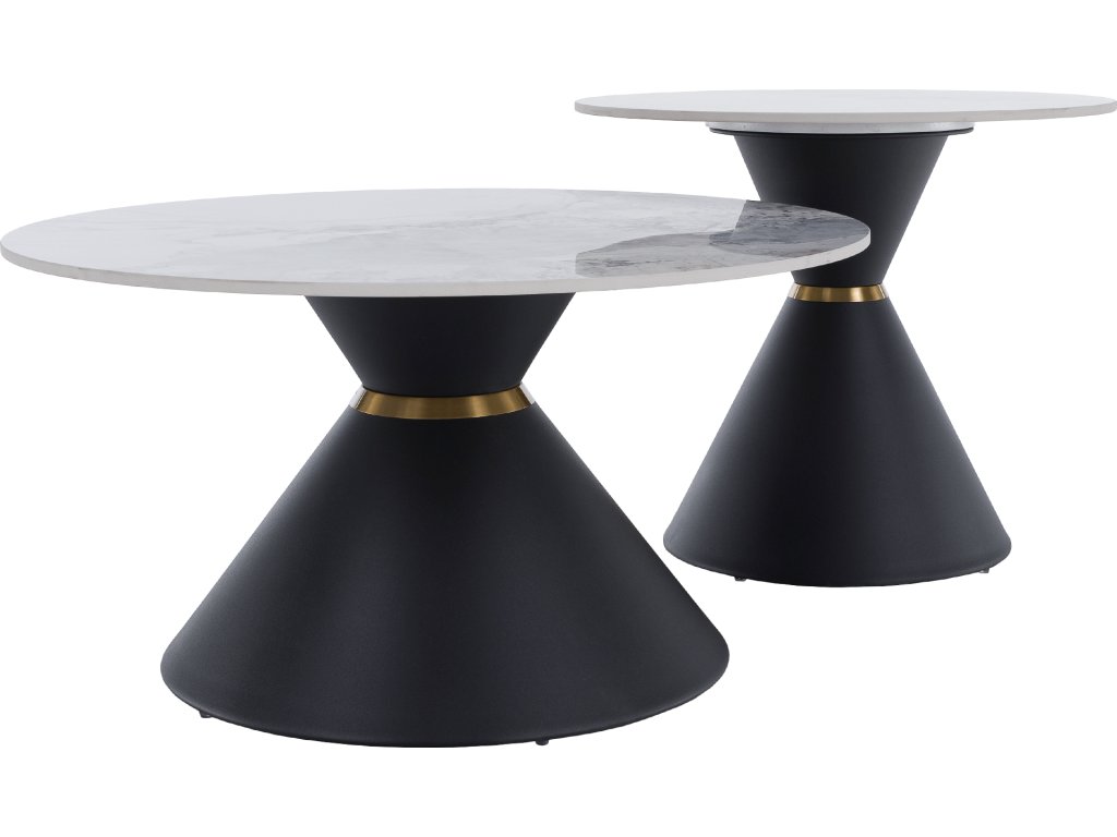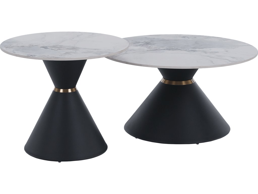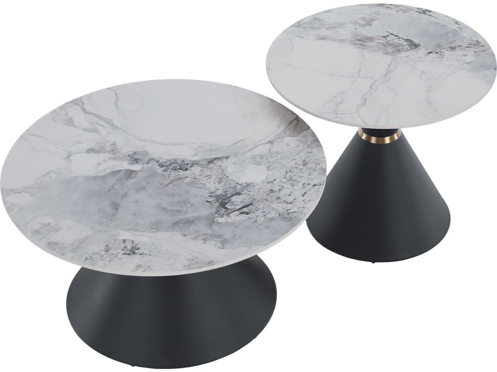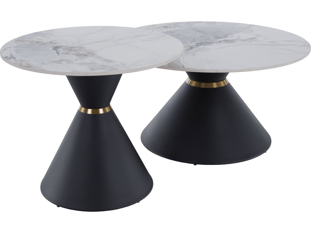 Konferenční stolky, set 2 ks, bílý mramor/černá/zlatá, ocel, MABUZ