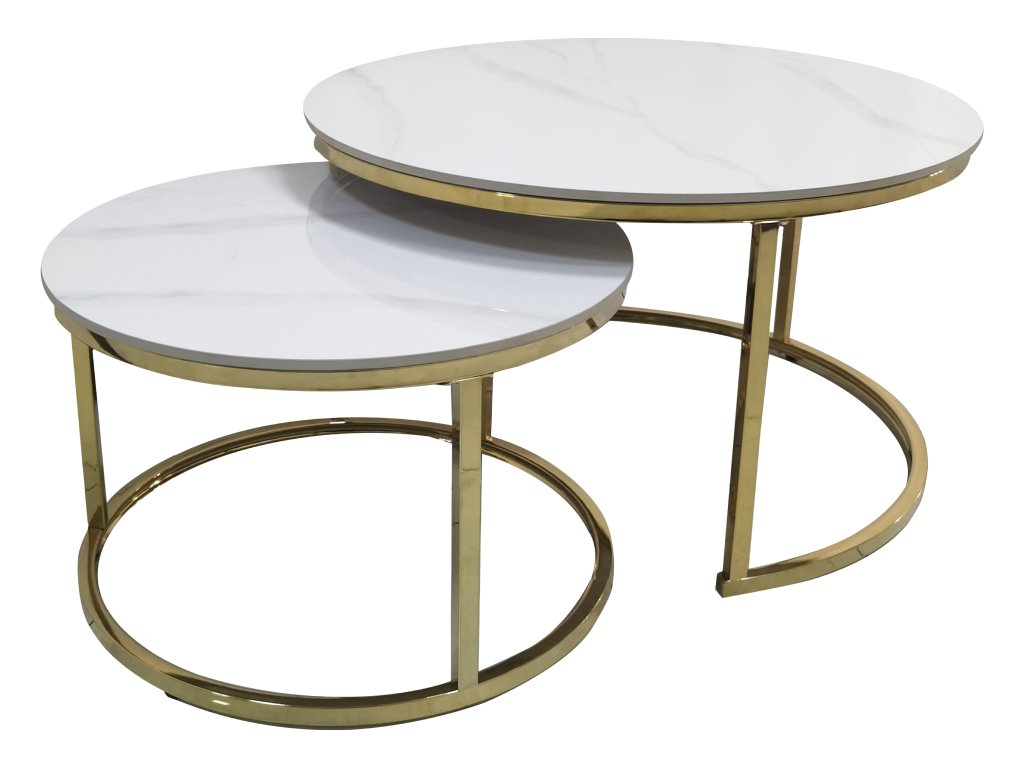 Konferenční stolky, set 2 ks, imitace mramoru/gold chrom-zlatý, DEVNET 3 NEW