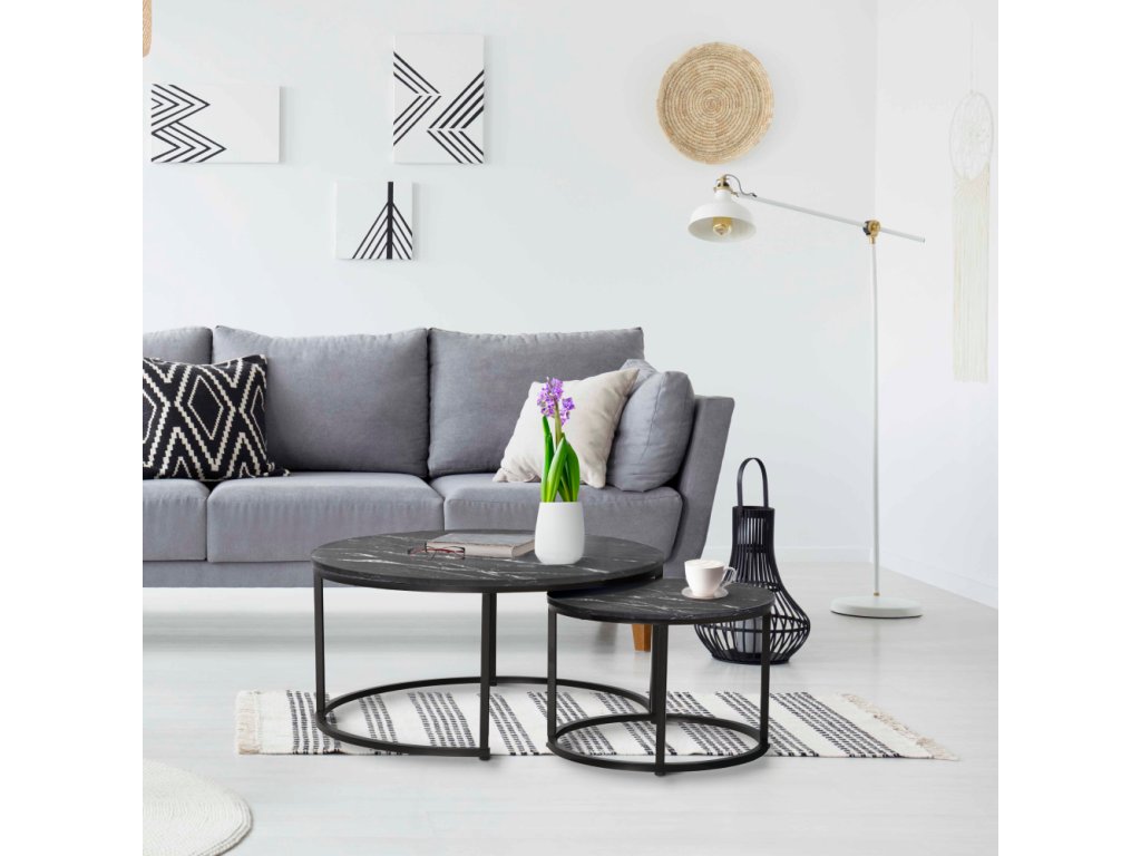 Konferenční stolky, set 2 ks, tmavě šedá/černá, CIRKO