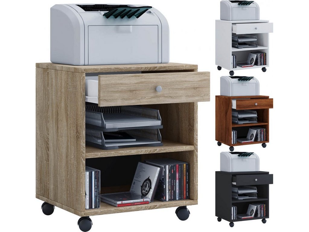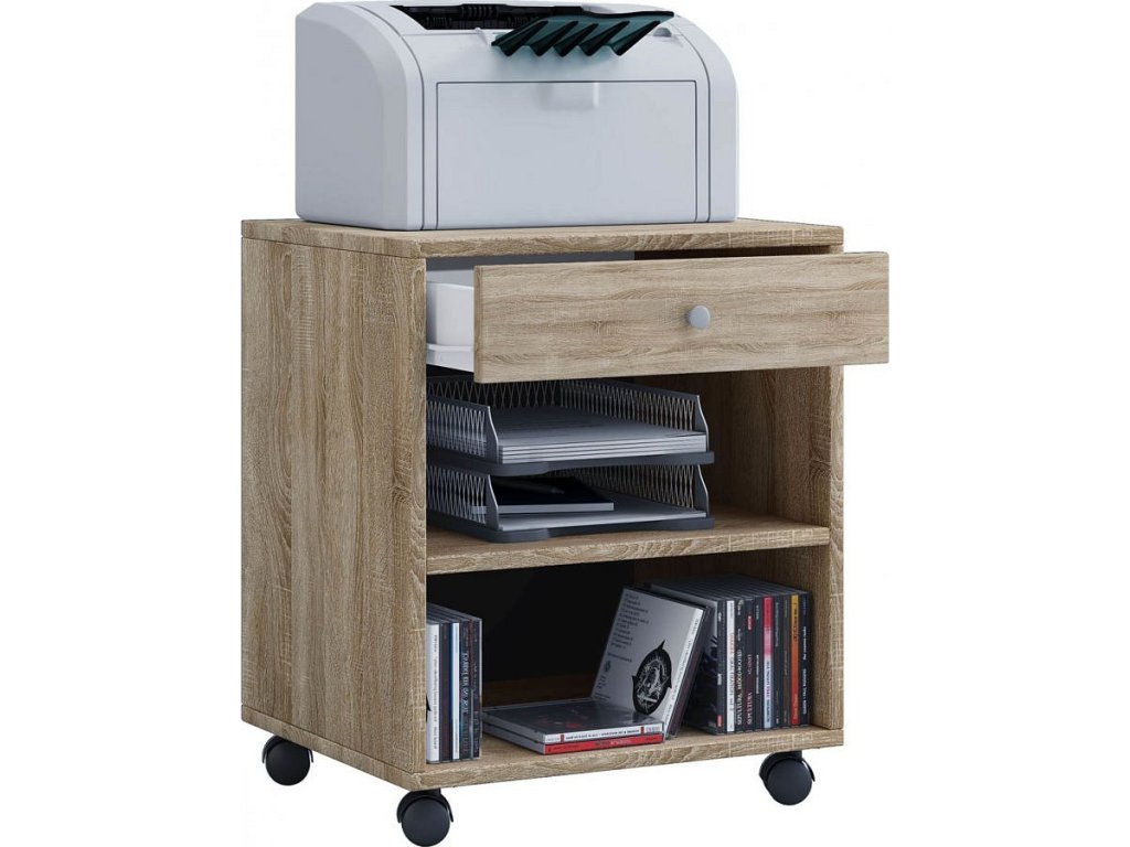 Kancelářský kontejner má čtyři kolečka, které zajišťují dostatečnou mobilitu. Dva otevřené oddíly a jedna zásuvka nabízí dostatečný prostor pro ukládání různých drobností.