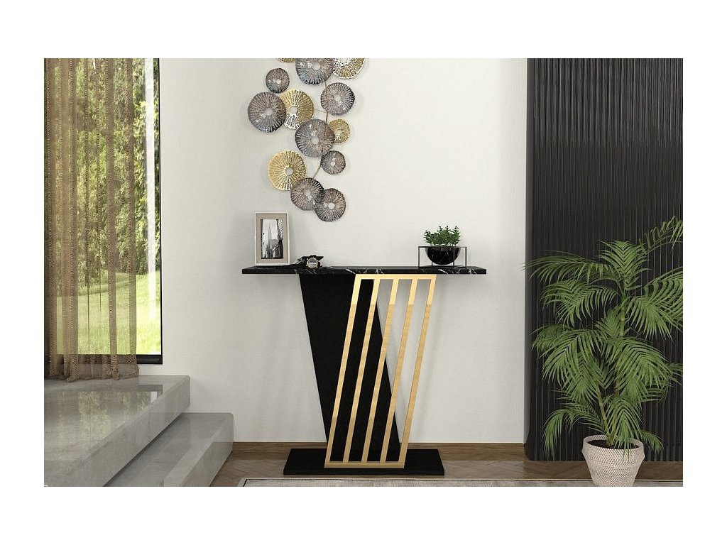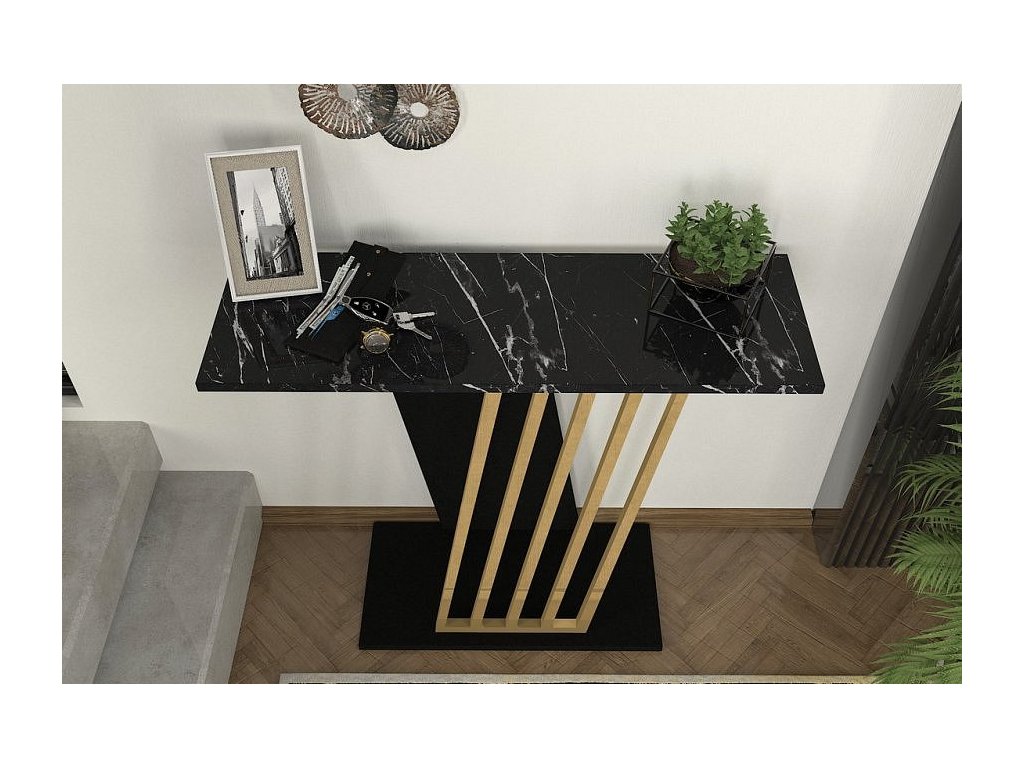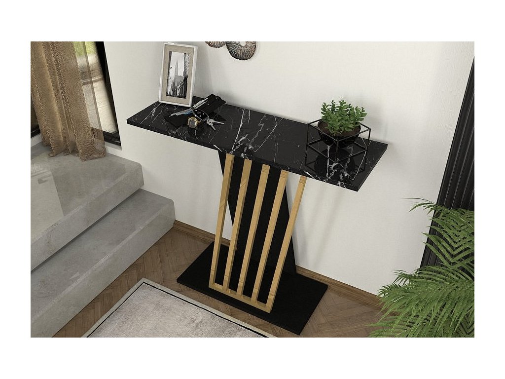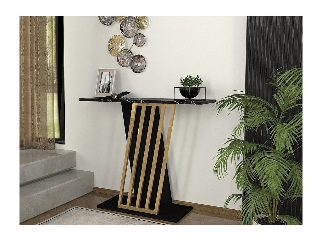 CASA 28032 Konzolový stolek je vyroben z kvalitního lamina o tl.18 mm hraněné PVC páskou, odolného proti poškrábání v kombinaci barev černá/marble elegantně doplněno o dekorační lišty. Dodáváme v demontovaném stavu.