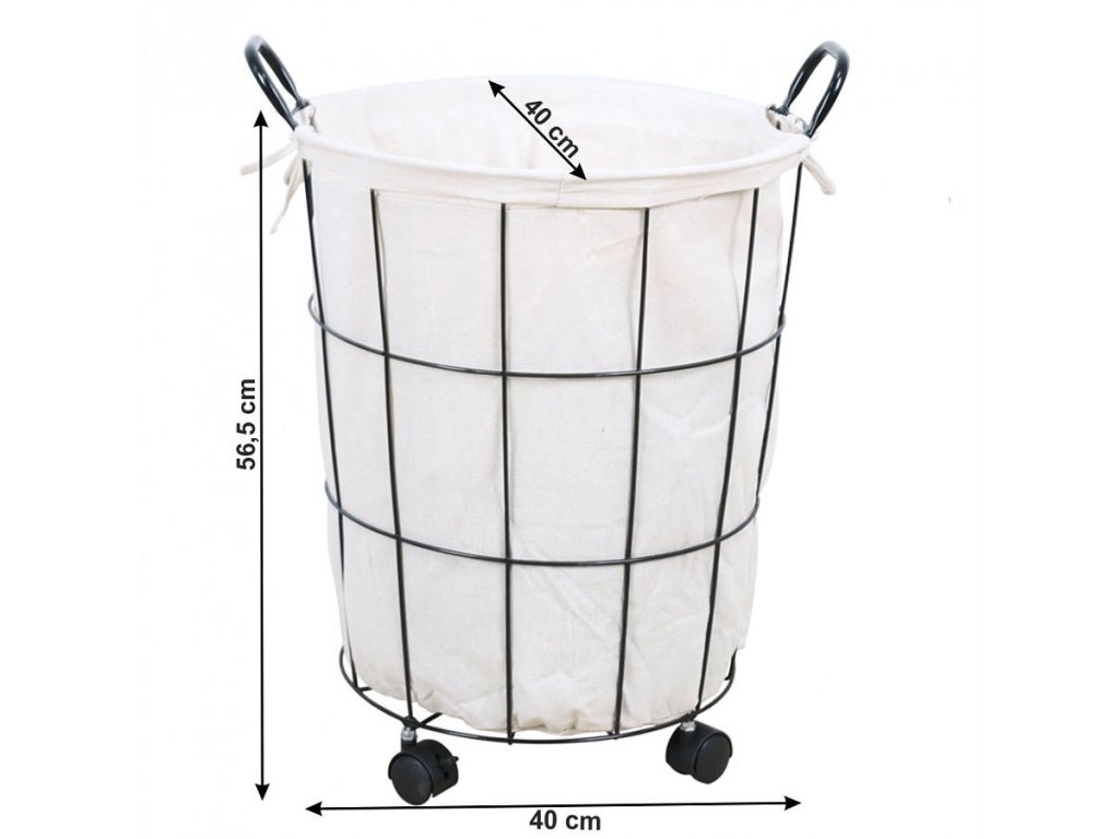Materiál: kov / látka Barva: černá / bílá Rozměry (ŠxHxV): 40x40x56,5 cm S kolečky 2kolieska s brzdou pojezdů koš S úchytkami Dodávané v monte