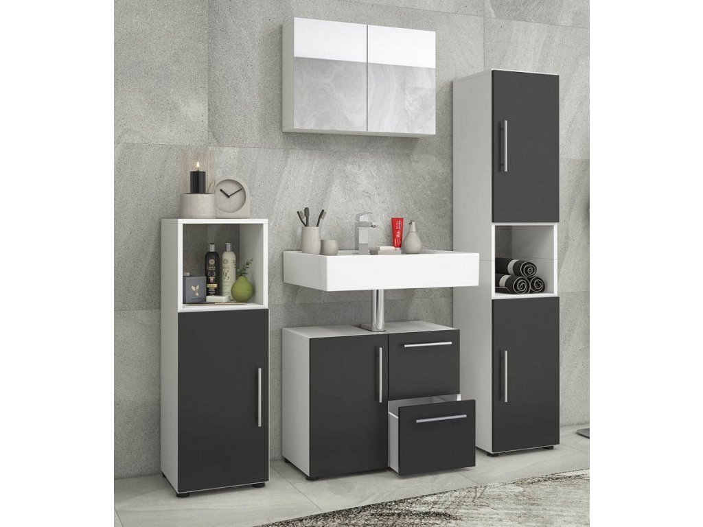 Koupelnová sestava Flandu se zrcadlovou skříňkou, černá/bílá