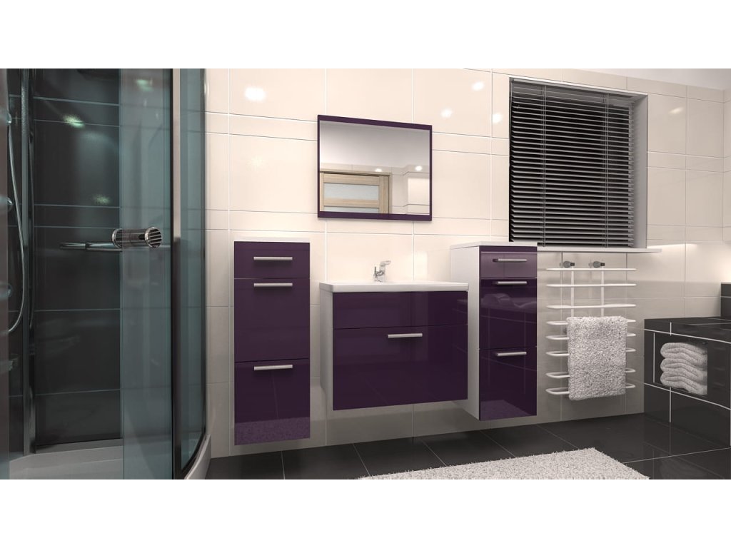 Moderní a jednoduchá koupelnová sestava, která splní svůj praktický i dekorativní účel. Sestava se skládá ze dvou závěsných skříněk, zrcadla a skříňky pod umyvadlo včetně umyvadla. Koupelnová sestava má plastové úchyty v šedé barvě. Dvířka jsou vyrobena v lesku z lamina tloušťky 16 mm v černé barvě, korpusy jsou v bílém provedení MAT tloušťky lamina 18 mm. Zboží je dodáváno v demontu se schematickým návodem k montáži. Vyobrazené dekorace nejsou v ceně sestavy. Sestavu nabízíme také v dalších barevných provedeních, které jsou k vidění na vedlejších fotografiích.