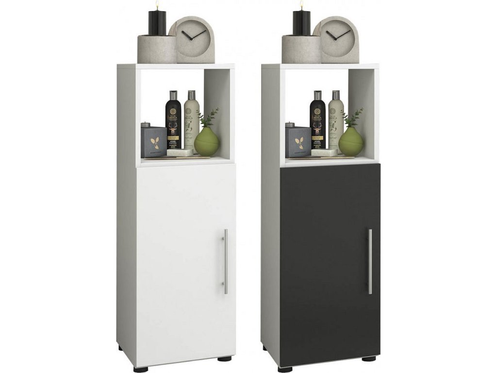 Polovysoká skříňka z řady Flandu je doplňkovým úložným prostorem. Disponuje prostorem s dvířky a otevřenou poličkou. Praktická povrchová úprava usnadňuje údržbu a je odolná proti vlhkosti. Skříňka může být doplněna dalším koupelnovým nábytkem ze série Flandu.