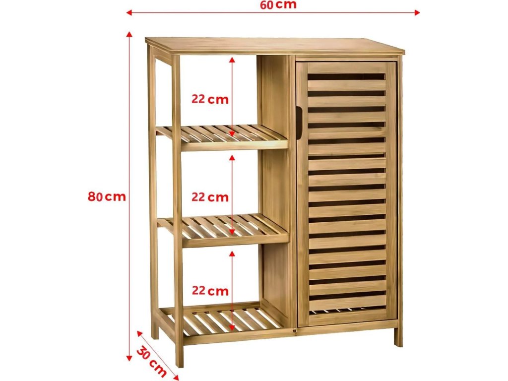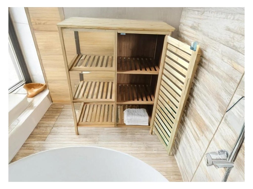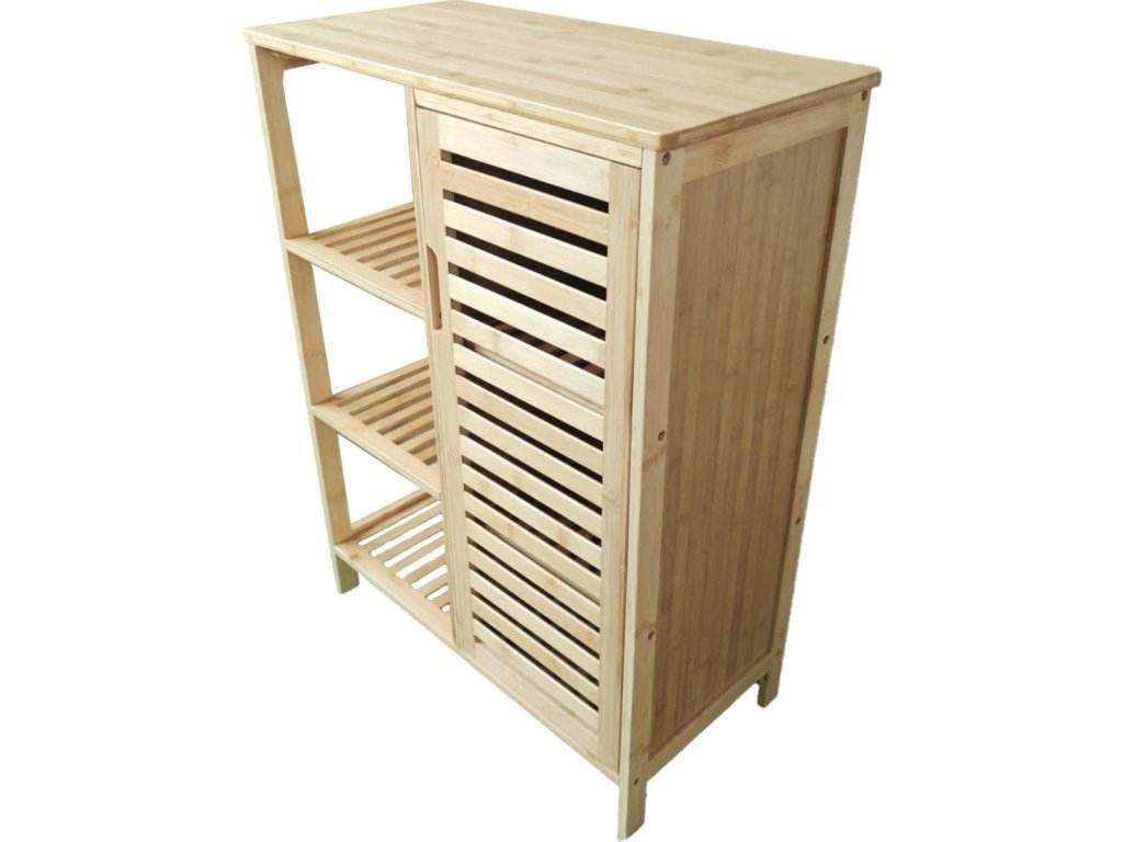 CASA 95246 S touto bambusovou skříňkou D1D3P vytvoříte praktický úložný prostor pro vaše koupelnové potřeby. Na první pohled zaujme svým přírodním vzhledem, který dodá každé koupelně útulnou atmosféru. Skříňka je vyrobena z vysoce kvalitního bambusu s voděodolnou lakovanou úpravou, díky čemuž se nedeformuje a může vám sloužit dlouhá léta. Lamelová konstrukce zároveň umožňuje dobrou cirkulaci vzduchu uvnitř skříňky, což oceníte zejména při ukládání ručníků nebo hygienických potřeb. Kromě použití v koupelně může tato praktická volně stojící bambusová skříňka sloužit také jako kuchyňská skříňka na mikrovlnnou troubu, nádobí nebo sklenice; případně jako odkládací stolek v obývacím pokoji na knihy, dekorace nebo fotografie. Dodáváme v demontovaném stavu.