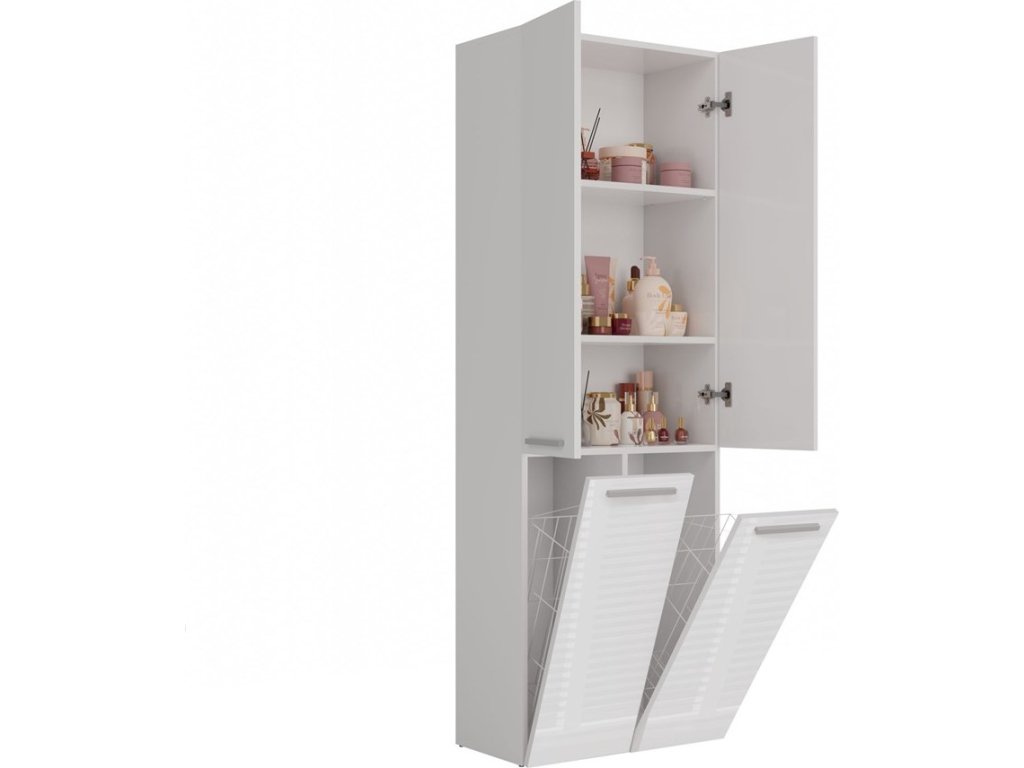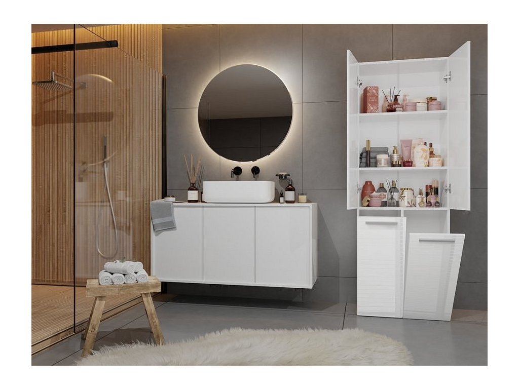 Stylová skříňka Noeli vám díky praktickému úložnému prostoru pomůže vytvořit dokonale organizovanou a útulnou koupelnu. Nadčasový design splní očekávání všech, kteří oceňují kombinaci jednoduchosti a elegance. Skříňka je vyrobená ze snadno udržovatelného lamina, hrany jsou povrchově upravené ABS plastem - vyznačuje se vysokou mechanickou a chemickou odolností.