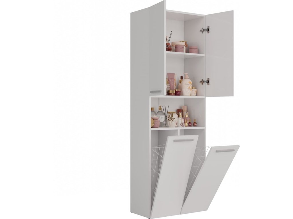 Stylová skříňka Noeli vám díky praktickému úložnému prostoru pomůže vytvořit dokonale organizovanou a útulnou koupelnu. Nadčasový design splní očekávání všech, kteří oceňují kombinaci jednoduchosti a elegance. Skříňka je vyrobená ze snadno udržovatelného lamina, hrany jsou povrchově upravené ABS plastem (vyznačuje se vysokou mechanickou a chemickou odolností).
