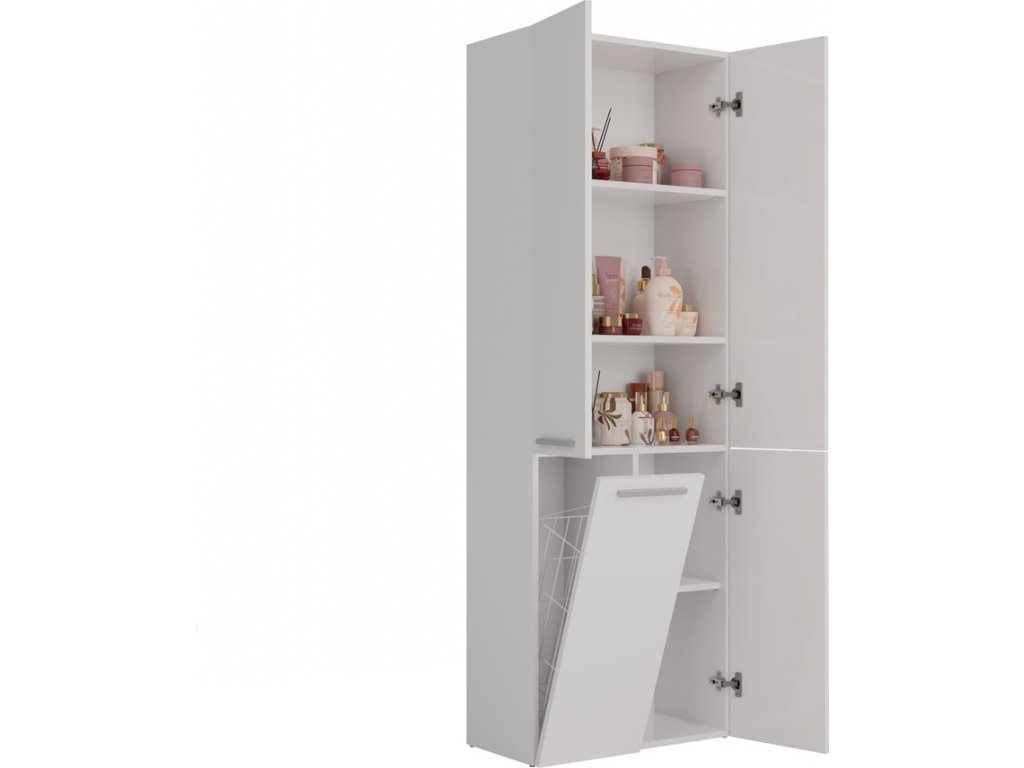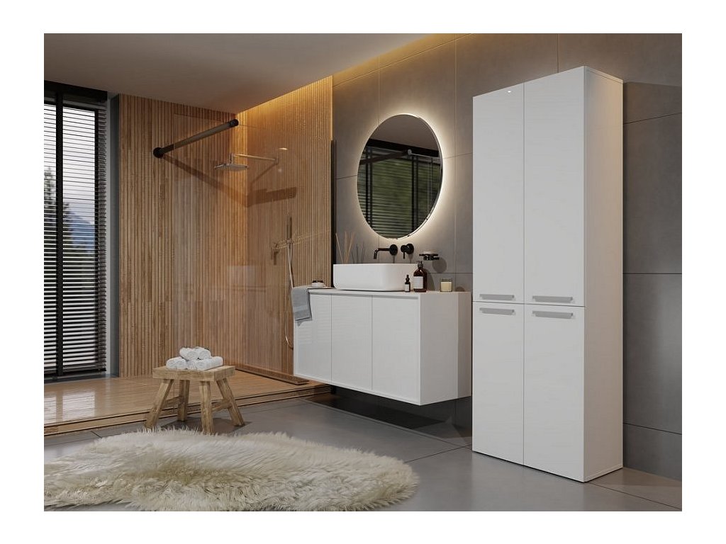 Stylová skříňka Noeli vám díky praktickému úložnému prostoru pomůže vytvořit dokonale organizovanou a útulnou koupelnu. Nadčasový design splní očekávání všech, kteří oceňují kombinaci jednoduchosti a elegance. Skříňka je vyrobená ze snadno udržovatelného lamina, hrany jsou povrchově upravené ABS plastem (vyznačuje se vysokou mechanickou a chemickou odolností).