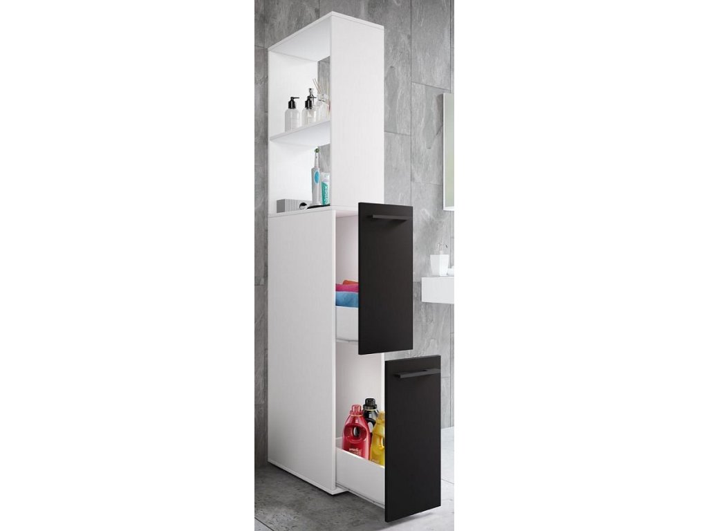 Koupelnová skříň Sadilo XL díky svému nadčasovému vzhledu perfektně zapadne téměř do každé koupelny. Dvě prostorné zásuvky a dvě otevřené přihrádky nabízejí dostatek úložného prostoru pro ručníky i další koupelnové potřeby. Skříň lze využít také jako praktickou dělicí stěnu.