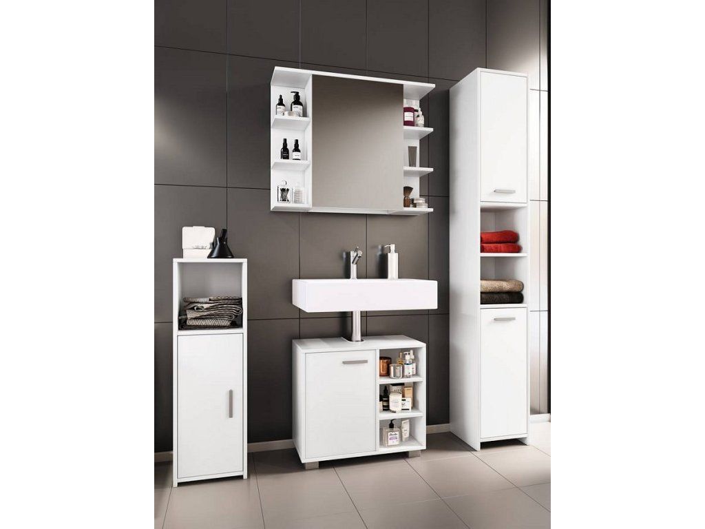 Díky kombinaci otevřených polic a uzavřených přihrádek budete mít vše po ruce a zároveň skryté před zraky. Ideální volba jako funkční nábytek do koupelny pro menší i větší prostory.