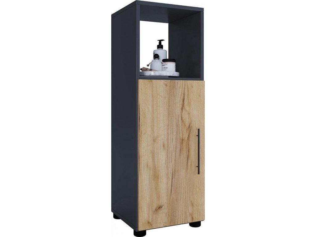 Hlavní vlastnosti: - Jedna otevřená police - Jedna velká dvířka - Rozměry cca v. 93 x š. 31 x h. 32 cm - Jednoduchá montáž - Reprodukce struktury dřeva Midi skříňka „Flandu“ je malý prostorový zázrak a zaujme svým jednoduchým designem. Volitelně rozšiřitelná o další nábytek ze série VCM „Flandu“.