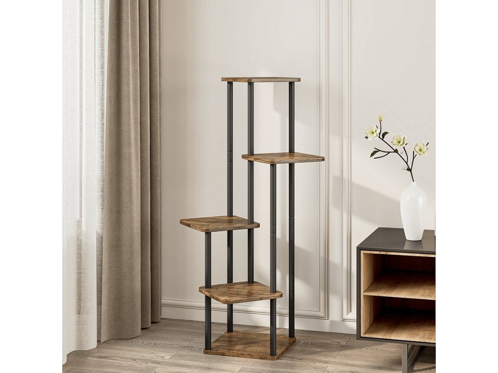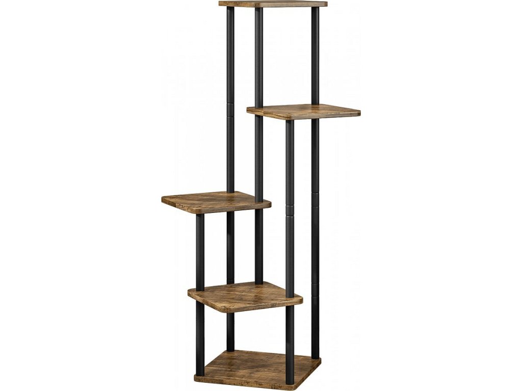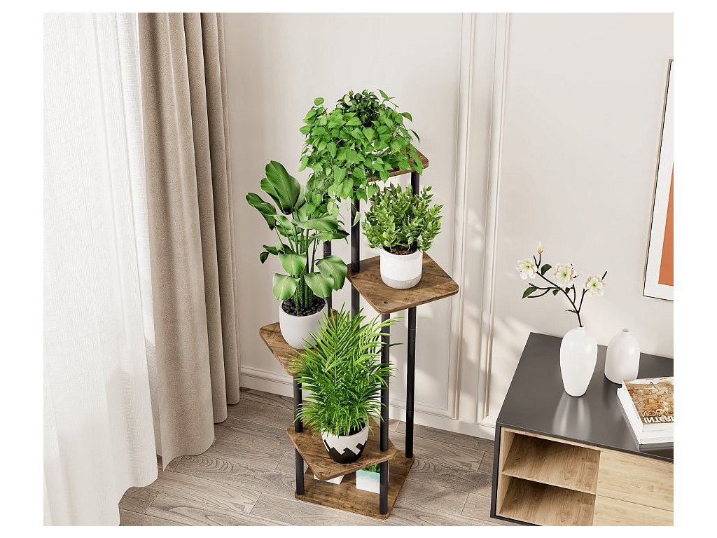 Kovový stojan na květiny, černá/rustikální dřevo, ADITE