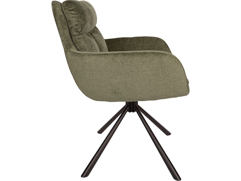 Celočalouněné křesílko na kovové podnoži, otočné uložení s návratem do výchozí pozice.