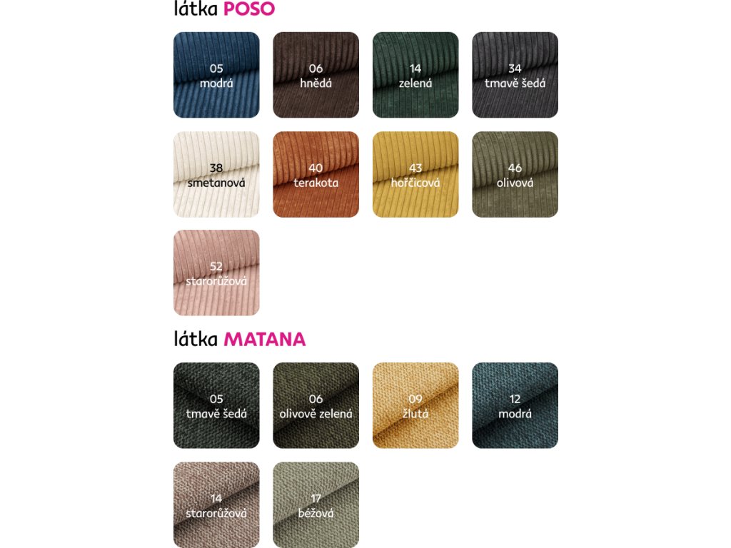 Možnost objednání v 9 barevných provedeních látky Poso a v 6 barevných provedeních látky Matana s možností výběru dřeva v barvě černá nebo buk v ceně 4.490 Kč. Při individuální objednávce je třeba zaplatit 20% zálohu z dané částky. Po uhrazení zálohy bude Váš požadavek zadán do výroby. Doba dodání 6-8 týdnů.