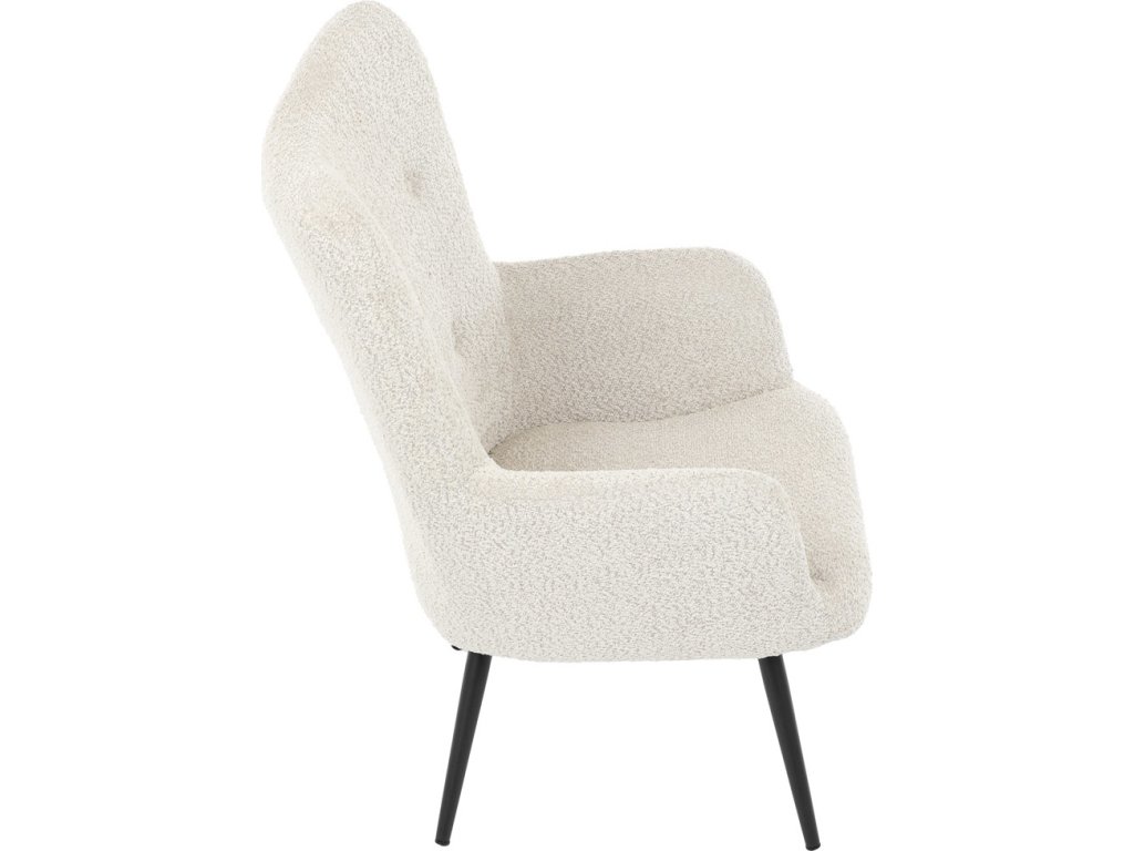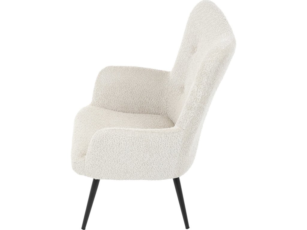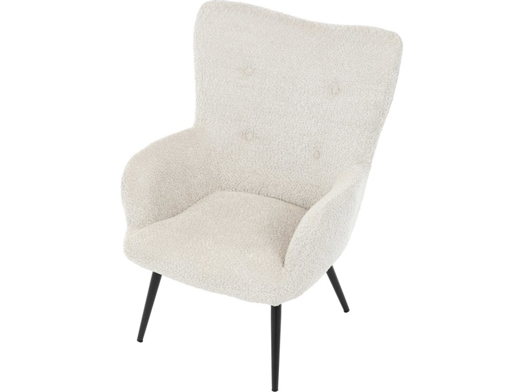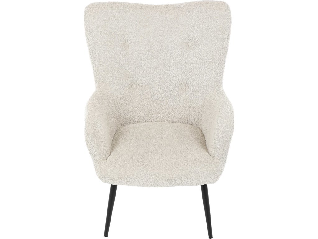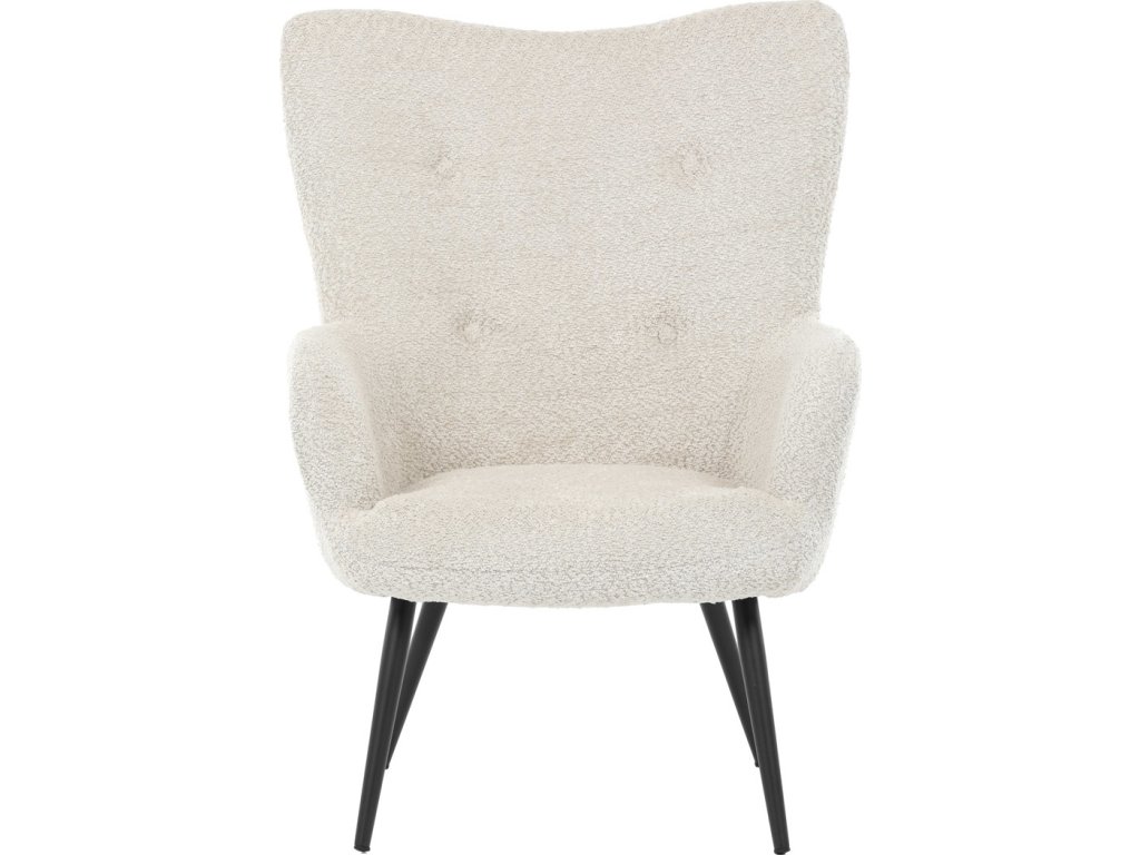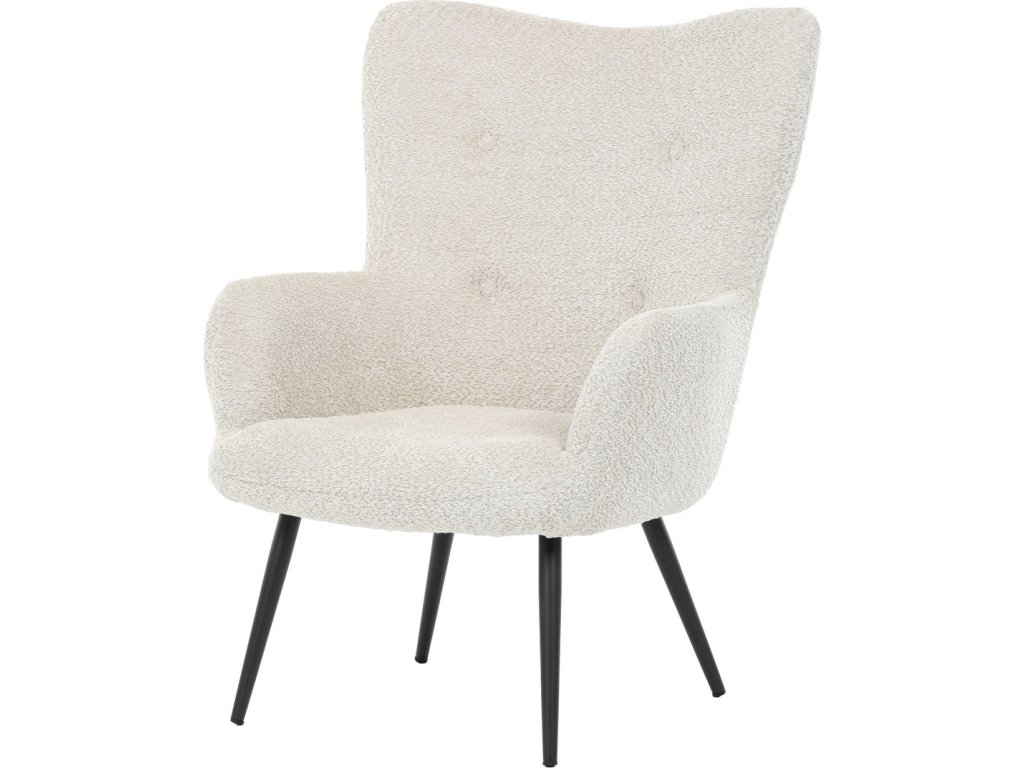 Elegantní křeslo ušák značky Autronic vnese do vašeho obývacího pokoje pohodlí a styl. Béžové čalounění z látky Bouclé působí jemně a moderně, zatímco ergonomicky tvarované područky a opěradlo s jemnými knoflíky zajišťují maximální komfort. Stabilní kovové nohy s černým povrchem dodávají křeslu industriální nádech a zajišťují pevnost i při každodenním používání. Toto křeslo je ideální pro chvíle relaxace s knihou nebo při posezení s přáteli. Díky svému jednoduchému designu snadno zapadne do každého interiéru.