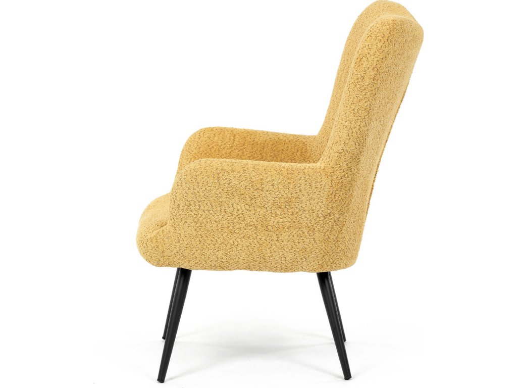 Elegantní křeslo ušák značky Autronic vnese do vašeho obývacího pokoje pohodlí a styl. Žluté čalounění z látky Bouclé působí jemně a moderně, zatímco ergonomicky tvarované područky a opěradlo s jemnými knoflíky zajišťují maximální komfort. Stabilní kovové nohy s černým povrchem dodávají křeslu industriální nádech a zajišťují pevnost i při každodenním používání. Toto křeslo je ideální pro chvíle relaxace s knihou nebo při posezení s přáteli. Díky svému jednoduchému designu snadno zapadne do každého interiéru.