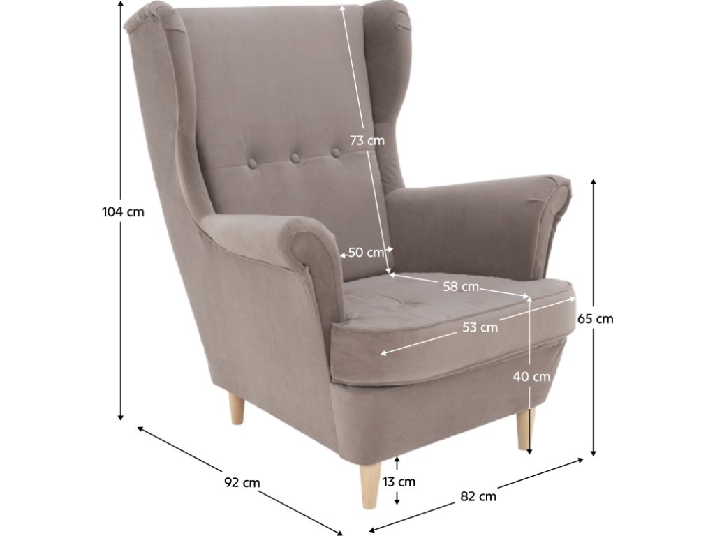 Rozměry křesla (ŠxHxV): 82x92x104 cm
