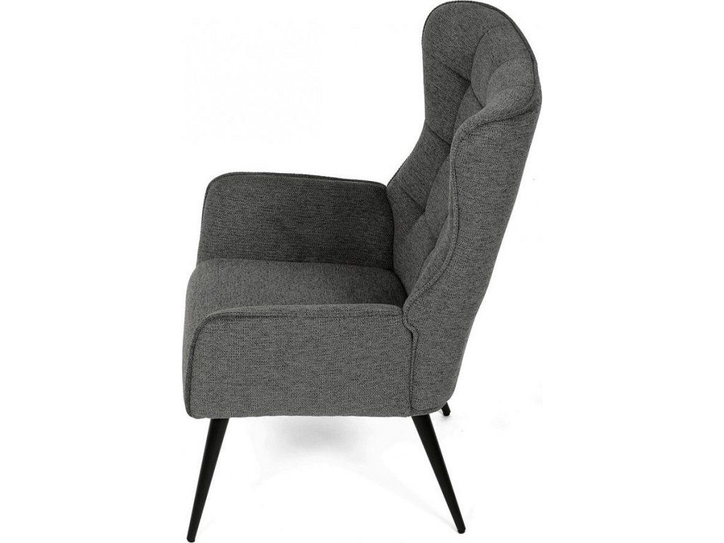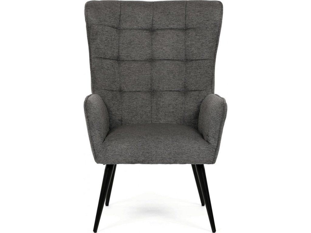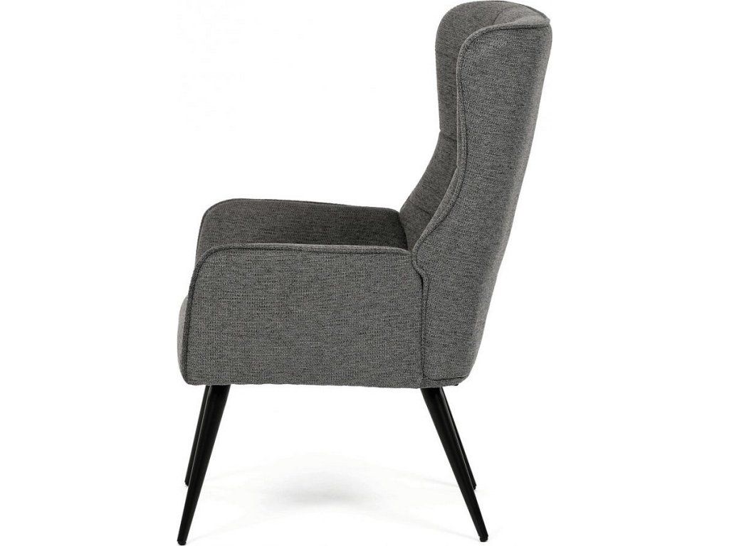 Křeslo s šedým potahem z voděodolné látky kombinuje pohodlí s praktickým využitím v interiéru.Kovové prvky zajišťují stabilitu a dlouhou životnost. Designové prošití na opěradle a sedáku podtrhuje moderní vzhled a zároveň přispívá k pevnosti čalounění. Područky jsou integrované do celkového tvaru křesla, což zvyšuje komfort při sezení. Díky použitým materiálům je křeslo vhodné pro každodenní relaxaci s důrazem na snadnou údržbu a odolnost vůči vlhkosti.