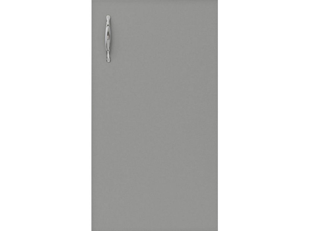 Materiál LTD, korpus je v šedé barvě, dvířka jsou v barvě ash surfside/chinchilla grey, úchyty jsou v barvě černé.