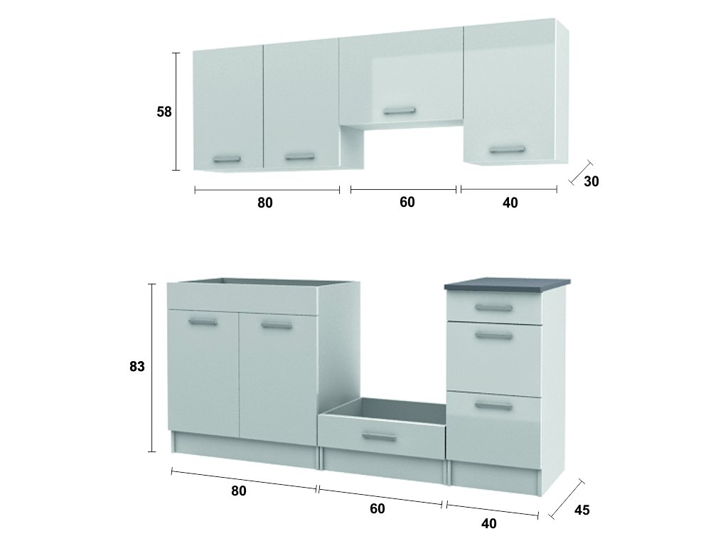 | Výška horních skříněk: | 58 cm |