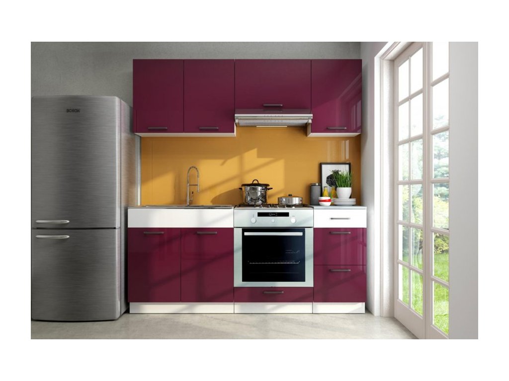 Potýkáte-li se s malými prostory a každý centimetr je pro Vás důležitý, pak je kuchyňská linka Lars tou správnou volbou pro Váš domov. Je vyrobena v moderním designu a skříňky si můžete sestavit buď tak, jak vidíte na úvodní fotografii, nebo si je můžete sestavit podle svých potřeb. Korpusy skříněk jsou bílé, dvířka jsou ve vysokém lesku fialové barvy. Všechny skříňky této sestavy jsou dodávány v demontu. Součástí je montážní plánek včetně všech potřebných spojovacích materiálů. Cena je uvedna za sestavu vyobrazenou na úvodní fotografii BEZ PRACOVNÍ DESKY. Spotřebiče,baterie a dekorace nejsou v ceně.