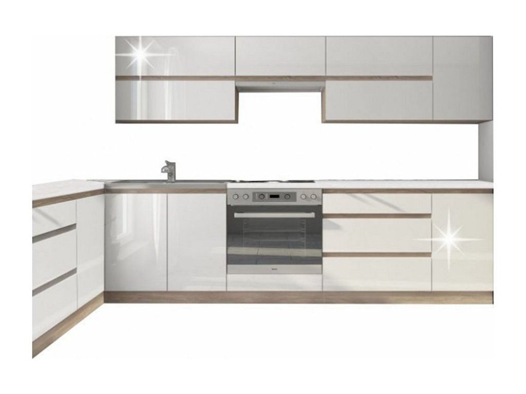 Tloušťka pracovní desky je až 38 mm. Dodávána s pracovní deskou a dolní lištou. Dodáváno v demontu. Spodní skříňky jsou dodávány s pracovní deskou (kromě skříňky D80ZL) a dolní lištou. Možnost dokoupit dřez LAY ON. Možnost dokoupit pracovní desku 38 mm v ceně 1.390 Kč / bm.