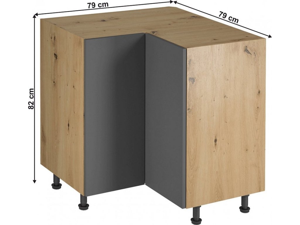 Kuchyňská rohová spodní skříňka LANGEN D90N, dub artisan/šedý mat