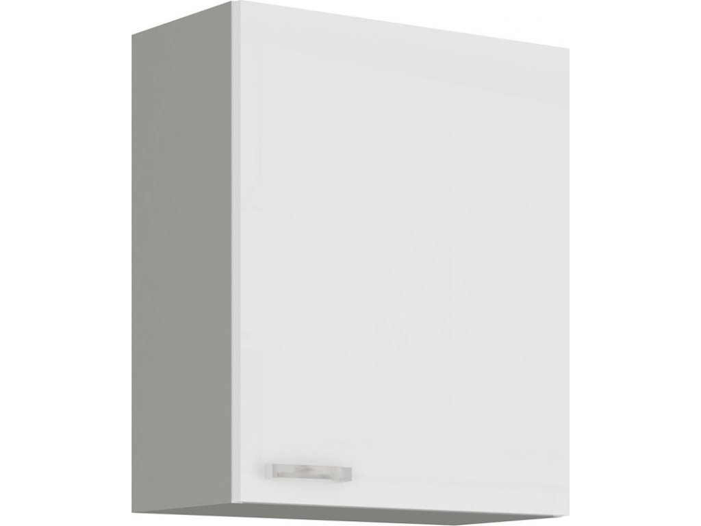 Horní kuchyňská skříňka je vyrobena z lamina tloušťky 16 mm bílé lesklé barvy. Korpus skříňky je v šedém provedení. Skříňka je vyrobena z kvalitních MDF desek s kovovým úchytem. Dvířka jsou vybavena systémem tichého zavírání. Poskládejte si z naší bohaté nabídky skříněk moderní a designovou kuchyň podle Vašich představ. Skříňka je dodávaná v demontu. Součástí je montážní plánek včetně všech potřebných spojovacích materiálů.