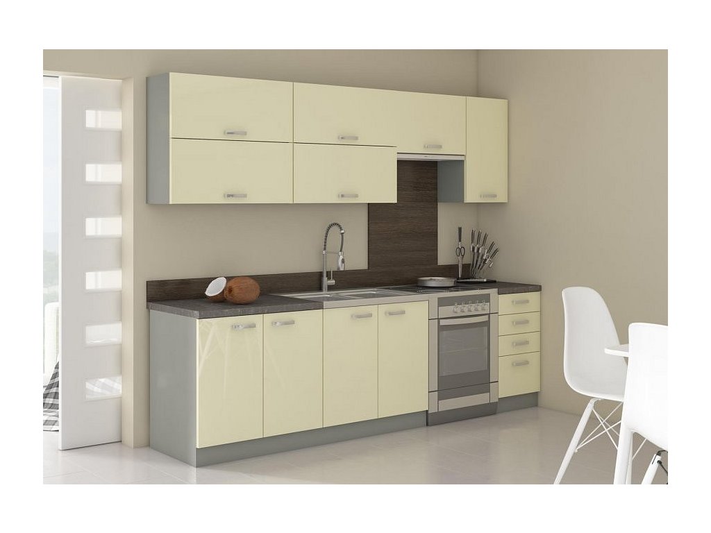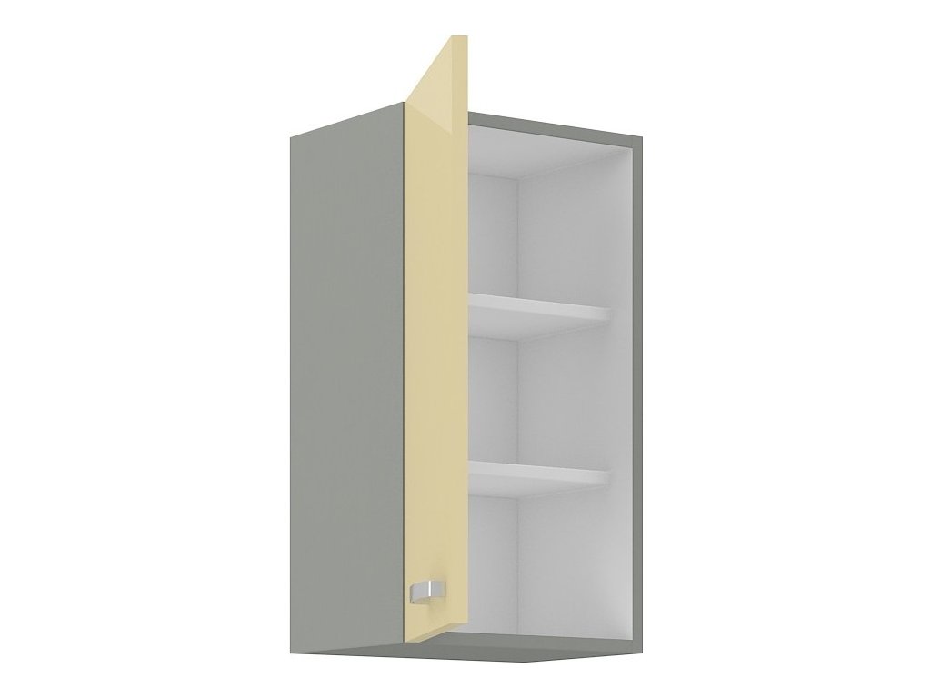 Horní kuchyňská skříňka je vyrobena z lamina tloušťky 16 mm lesklé krémové barvy. Korpus je v šedém provedení Dvířka mají lesklý kovový úchyt (délka 135 mm). Jsou vybavena systémem tichého zavírání a při montáži si můžete zvolit pravé či levé otevírání dveří. Vnitřek skříňky je v bílé barvě a obsahuje celkem dvě police, které Vám poskytnou dostatek místa k uskladnění všeho, co budete v kuchyni potřebovat. V doplňkových fotografiích naleznete další možnosti a insipraci k sestavení Vaši vysněné kuchyně. Nechte se inspirovat a poskládejte si z naší bohaté nabídky skříněk moderní a designovou kuchyň podle Vašich představ. Skříňka je dodávaná v demontu. Součástí je montážní plánek včetně všech potřebných spojovacích materiálů.