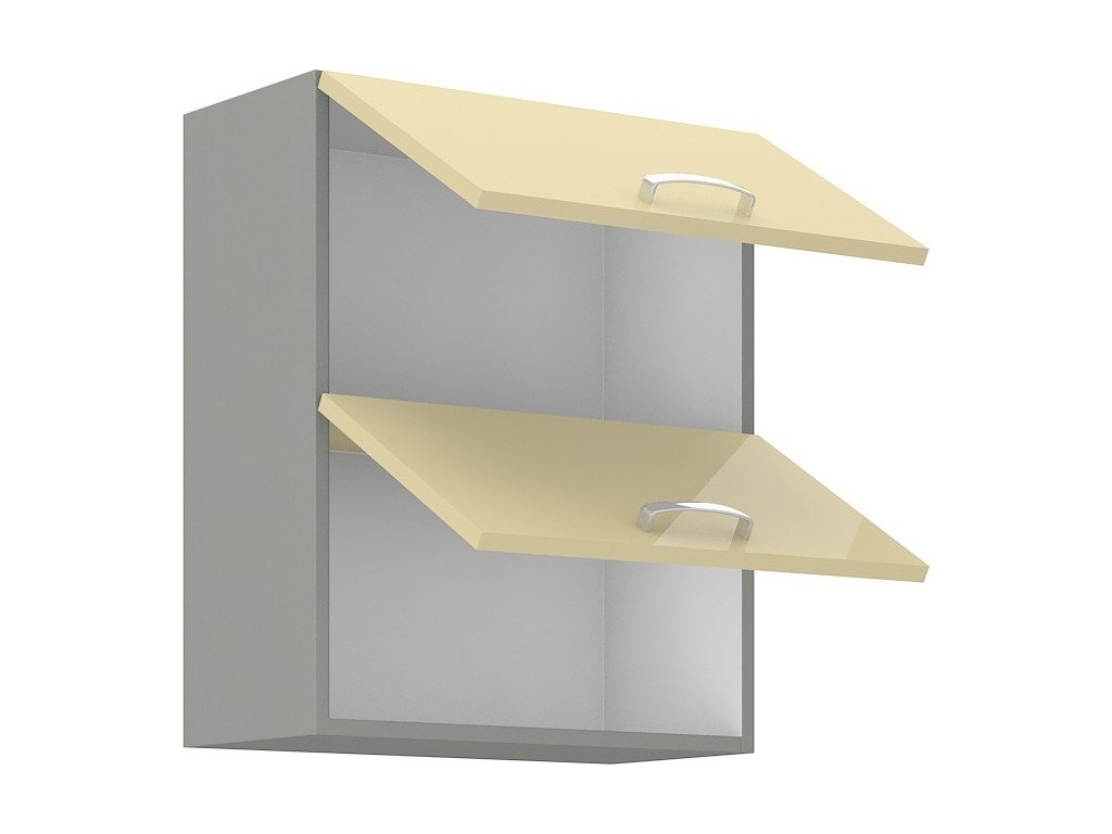 Tato horní dvoudvéřová kuchyňská skříňka je vyrobena z lamina tloušťky 16 mm lesklé krémové barvy. Korpus skříňky je v šedném provedení a vnitřek skříňky má bílou barvu. Skříňka je vyrobena z kvalitních MDF desek a poskytne Vám dostatek místa. Dvířka mají lesklý kovový úchyt (délka 135 mm) a dále jsou vybavena systémem tichého zavírání. Poskládejte si z naší bohaté nabídky skříněk moderní a designovou kuchyň podle Vašich představ. Skříňka je dodávaná v demontu. Součástí je montážní plánek včetně všech potřebných spojovacích materiálů.