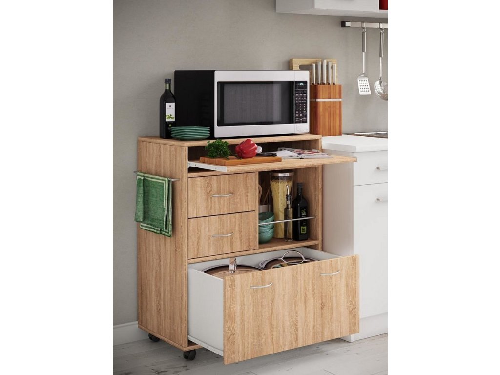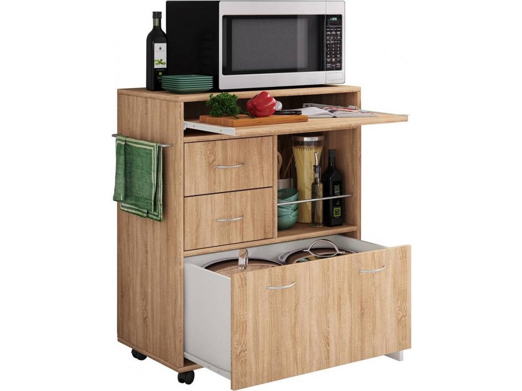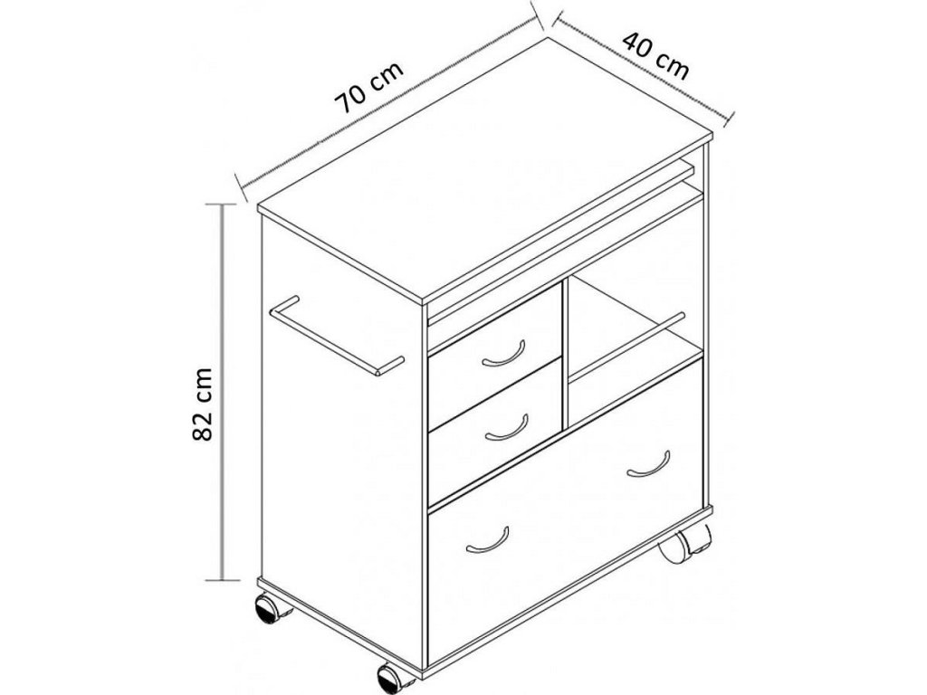 Elegantní a funkční kuchyňský vozík na kolečkách poskytuje dostatek úložného prostoru pro nádobí, kuchyňské potřeby i potraviny. Díky svému modernímu designu se hodí do každé kuchyně a skvěle doplní váš nábytek do kuchyně. Vozík je vybaven vysouvací pracovní plochou, praktickými zásuvkami a otevřeným odkládacím prostorem. Díky kolečkům ho snadno přesunete tam, kde ho právě potřebujete.