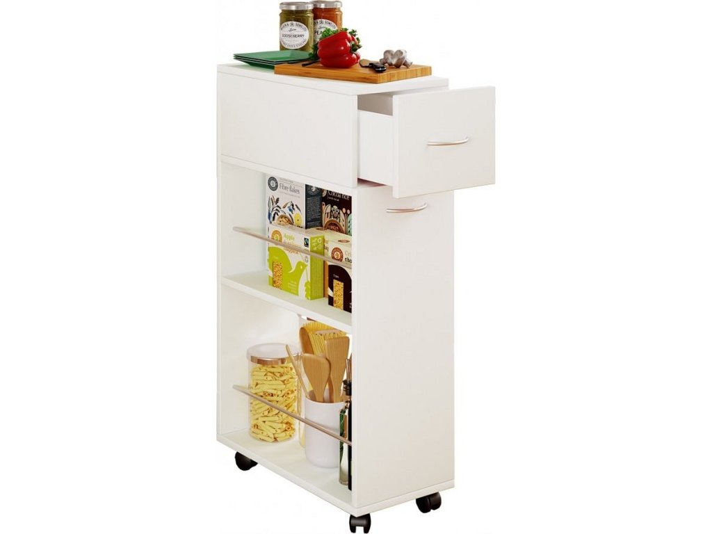 Kuchyňský vozík VCM "Tusal" nabízí praktický a prostorný úložný prostor s dvěma otevřenými přihrádkami a zásuvkou. Díky potaženému povrchu je snadno čistitelný a odolný vůči vlhkosti. VCM nábytek je známý svou vysokou kvalitou a kompletním montážním materiálem. Již více než 40 let VCM překvapuje a inspiruje novými nápady a technickými inovacemi.