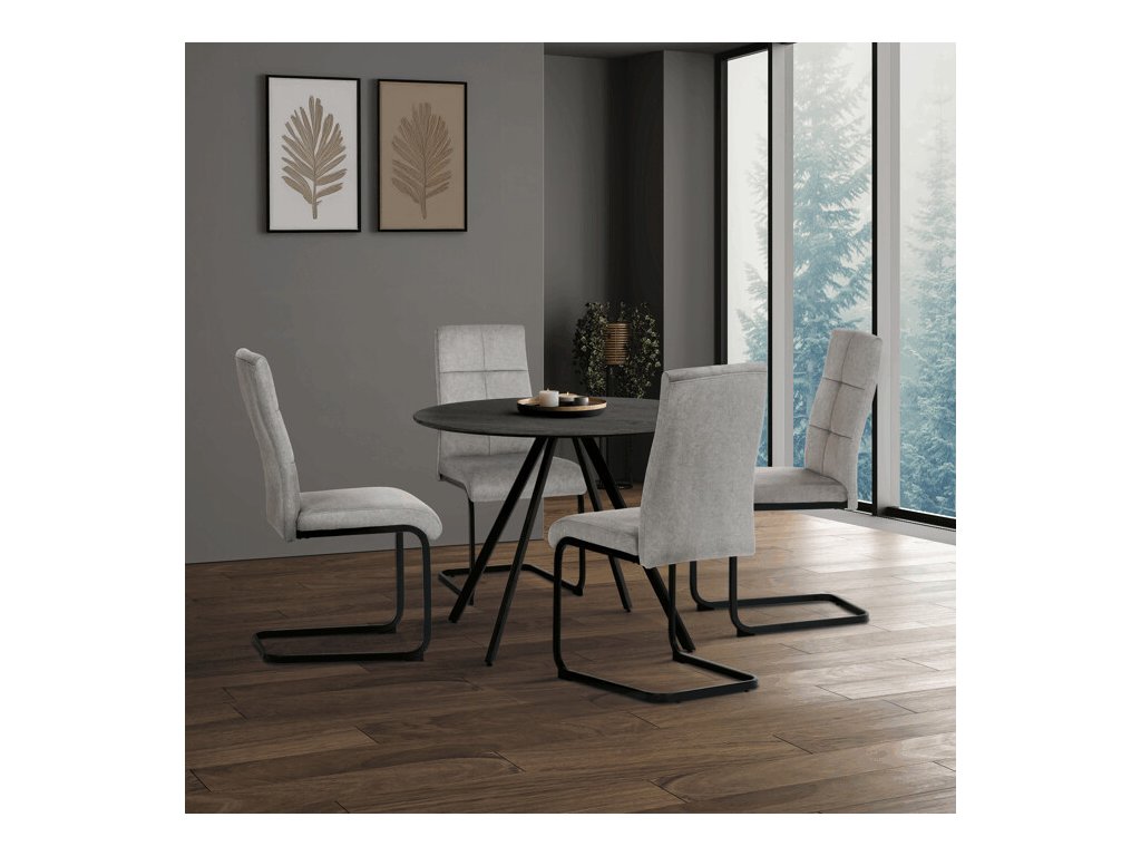 Jídelní stůl s kulatou deskou o průměru 100 cm a výšce 76 cm nabízí praktické řešení pro menší jídelní prostory. Deska je vyrobena z lamina s dekorem šedého dubu a matnou povrchovou úpravou, která je doplněna ABS hranou pro zvýšenou odolnost proti poškození. Stabilní kovová podnož v černém provedení zajišťuje pevnost a stabilitu, přičemž nohy jsou opatřeny rektifikačními patkami pro vyrovnání nerovností podlahy. Konstrukce stolu je navržena tak, aby poskytovala dostatek prostoru pro pohodlné sezení a snadnou údržbu. Tento stůl je vhodný jak do domácností, tak i do komerčních prostor s moderním interiérovým stylem.