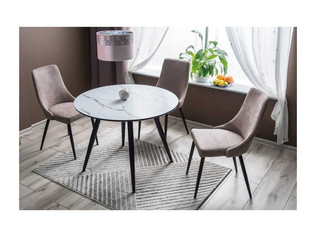 CASA 11397 Moderní kulatý stůl ve velmi netradičním provedení, který upoutá pozornost v každém interiéru. Deska stolu je z MDF v černé barvě a temperovaného skla s efektem mramoru, podstavec je z kovu v černé barvě. K tomuto stolu doporučujeme židle z naší nabídky. Dodáváme v demontovaném stavu.