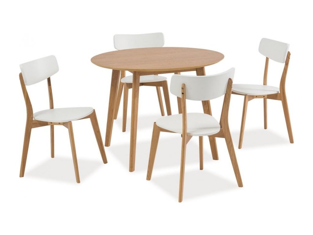 CASA 11514 Jídelní kulatý stůl ve stylu Scandinavian. Deska stolu je vyrobena z kvalitní MDF v kombinaci s přírodní dýhou v barvě dub, nohy stolu jsou z masivního dřeva - dub. K tomuto stolu doporučujeme židle v naší nabídce. Dodáváme v demontovaném stavu.