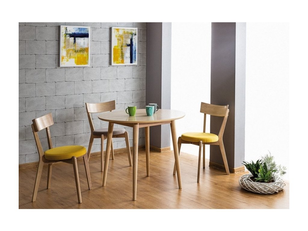 CASA 11519 Kulatý jídelní stůl ve stylu loft zaujme svým jednoduchým tvarem a bude ozdobou každého interiéru. Deska stolu je vyrobena z kvalitní MDF potažena přírodní dýhou, nohy stolu jsou z bukového dřeva, barevné provedení dub. K tomuto stolu doporučujeme židle v naší nabídce. Dodáváme v demontovaném stavu.
