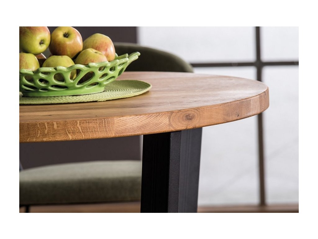 CASA 11192 Kulatý konferenční stolek ve stylu loft zaujme svým netradičním tvarem a bude ozdobou každého interiéru. Deska stolku je vyrobena z masivního dubového dřeva, nohy stolku jsou z kovu v černé barvě. Dodáváme v demontovaném stavu.