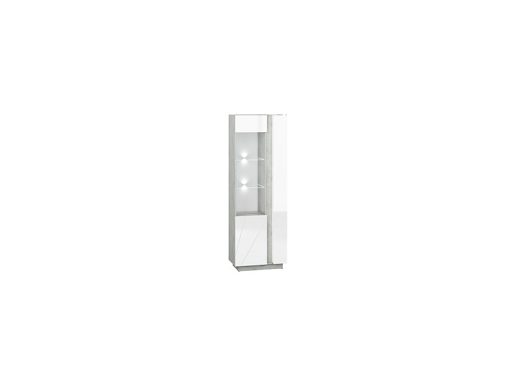 LAMIA 03L -vitrína 1D1W, lamino, beton/bílá lesk/bílá lesk MDF (ML) (LUMENS03L=2BALÍKY) ***VÝPRODEJ