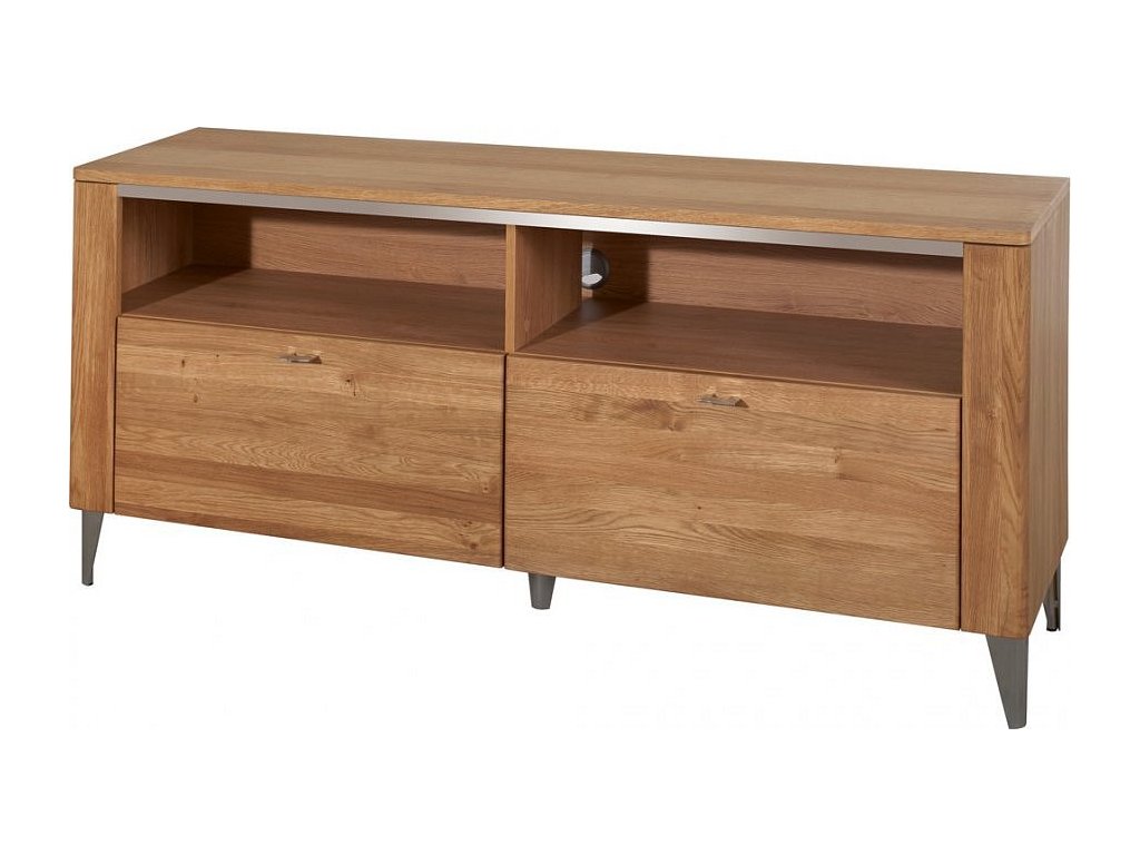 Korpus TV stolku je vyroben z přírodní dýhy. Přední část je vyrobena z masivu dubového dřeva. Úchyty jsou pochromované, ve stříbrné barvě. Nábytek disponuje vysokými elegantními nožičkami. Barevné provedení: dub medový.