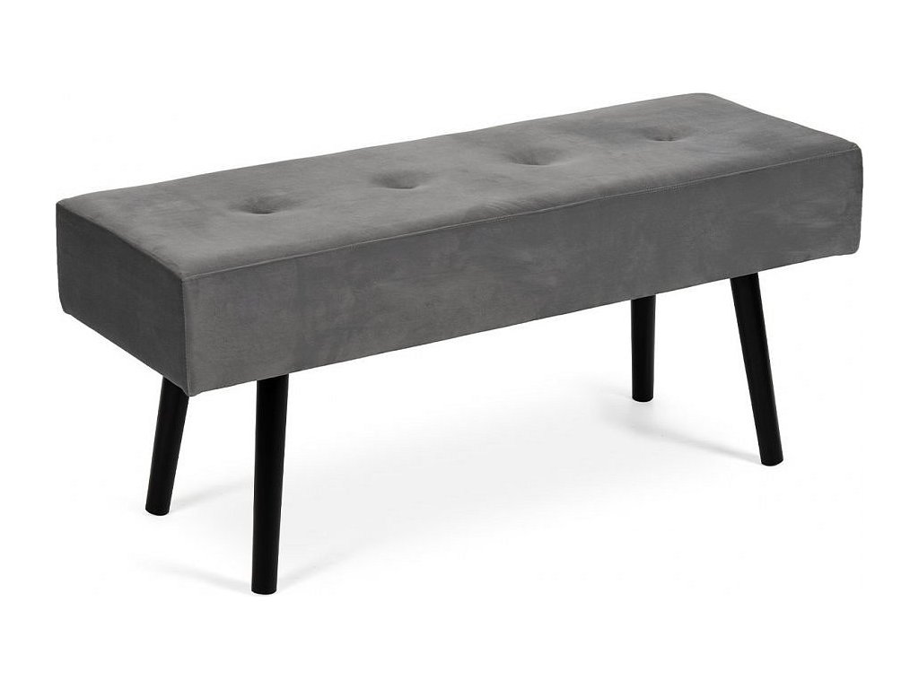 MDF, molitan s šedým sametovým potahem, nohy z borovicového dřeva v černé barvě, 100X35x43 cm.