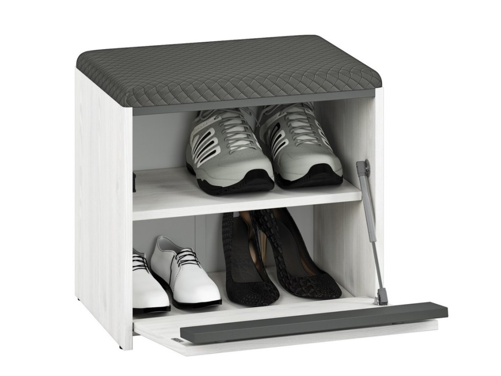 CASA 56015 Botník s výklopnými dvířky a polstrovaným sedákem je vyroben z desky LTD v kombinaci barev borovice sněžná/antracit. Dodáváme v demontovaném stavu.