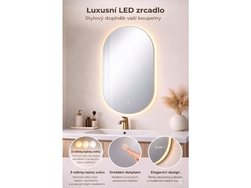 Zrcadlo Ovelia spojuje funkčnost, estetiku a moderní technologii – ideální volba pro ty, kteří ocení krásu v jednoduchosti.