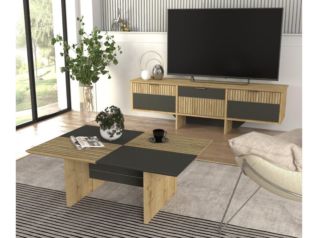 Konferenční stolek je vyroben z kvalitního materiálu LTD o tloušťce 18 mm, což zaručuje jeho pevnost a dlouhou životnost. Jeho elegantní kombinace šedé a světle hnědé barvy přidá vašemu obývacímu pokoji moderní nádech, zatímco obdélníkový tvar poskytuje dostatek prostoru pro všechny vaše potřeby.