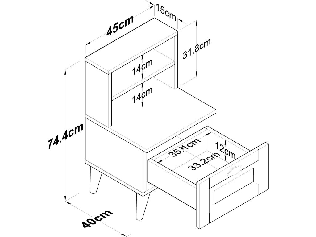 - Rozměry: 74,4 x 45 x 40 cm – ideální velikost pro umístění vedle postele.