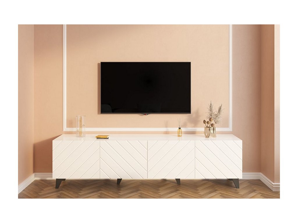 je televizní stolek, který ztělesňuje nejnovější trendy v designu nábytku ve formě rybího vzoru na předních dvířkách. S kombinací kvalitních materiálů a sofistikovaného designu je tento nábytek dokonalým doplňkem pro každý moderní interiér. Televizní stolek je nejen designovým prvkem, ale také praktickým kouskem nábytku, který nabízí bohatý úložný prostor.
