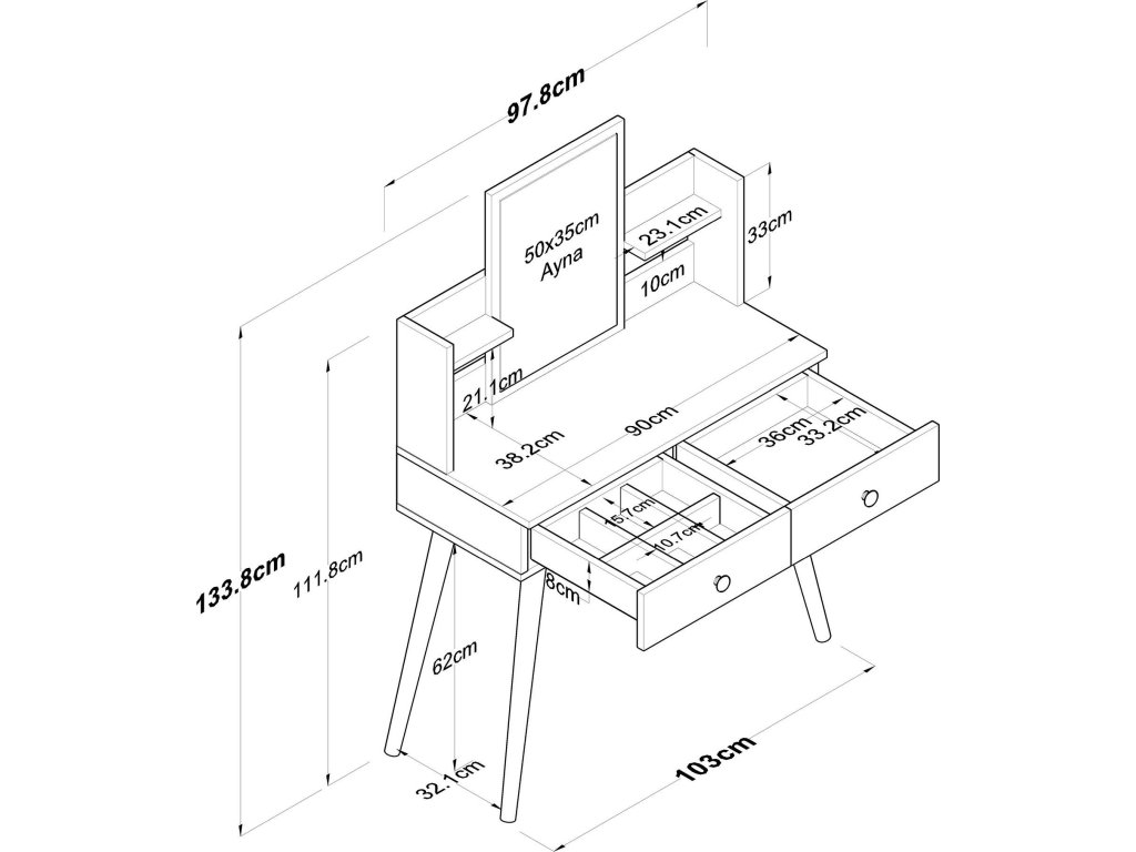 - 2 praktické zásuvky na kosmetiku, šperky nebo jiné doplňky.