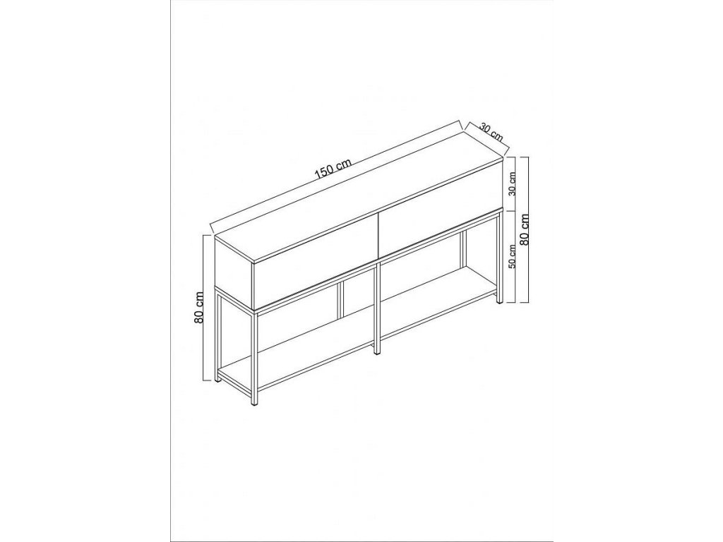 S šířkou 150 cm, výškou 80 cm a hloubkou 30 cm nabízí tato konzole dostatek prostoru k vystavení vašich cenných věcí nebo k uspořádání nezbytností. Díky svému všestrannému designu je vhodná do různých prostředí, ať už je to váš obývací pokoj, chodba nebo dokonce ložnice. Popusťte uzdu své kreativitě a proměňte jakýkoli prostor v oázu elegance.