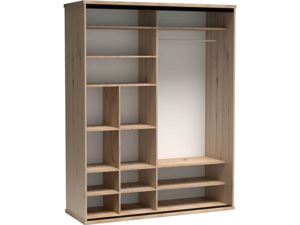 CASA 71023 Sestava nábytku do ložnice v moderním provedení. Kolekce nábytku v sobě spojuje jednoduchost, originální vzhled a funkčnost. Barevné provedení je v kombinaci dub artisan/černá mat. Nábytek je vyroben z kvalitního lamina ohraničeného ABS páskou, dekorační lamely jsou vyrobeny z desky MDF. Sestava se skládá z těchto položek (Š x V x H cm) - šatní skříň s posuvnými dveřmi (179 x 216 x 60 cm), manželská postel se zvedacím roštem a úložným prostorem (167,3 x 100 x 207 cm) a 2x noční stolek s nožkama (48 x 61 x 40,6 cm). Čelo postele je doplněno polstrováním. Postel je bez matrace, tu je nutno dokoupit. Doporučený rozměr matrace je 160 x 200 cm nebo 2 ks 80 x 200 cm. Kolekce se skládá z mnoha prvků a tento široký výběr Vám zaručí sestavit si nábytek podle svých vlastních představ a přání. Dodáváme v demontovaném stavu.